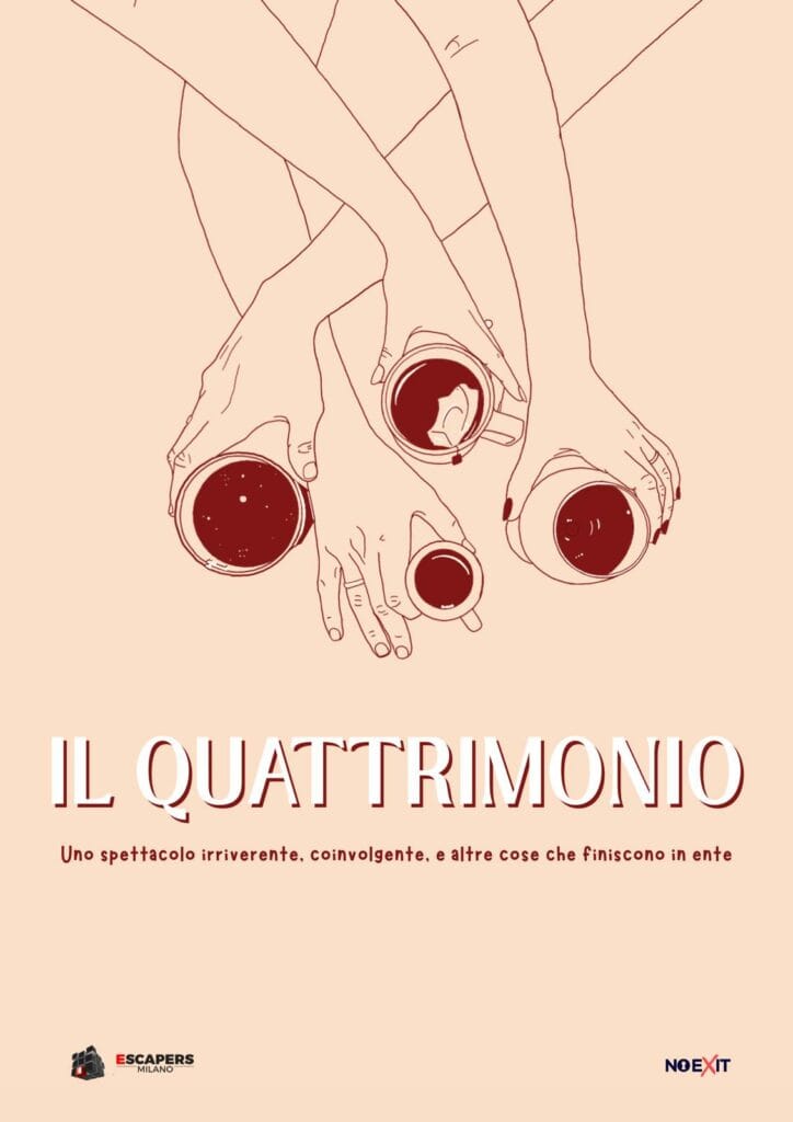 Il Quattrimonio è il nuovo spettacolo di teatro immersivo e interattivo – nato dalla penna di Gabriele Piacente – targato Escapers Milano. Un’esperienza unica in cui attori e spettatori si mescolano e il pubblico diventa parte della storia. Il concetto stesso di palco viene superato con la quarta parete che, di fatto, non esiste.